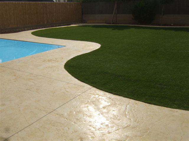 בטון מוטבע "קצה מושלם" בגימור סף לבריכת שחיה , מוטבע בהטבעה דמויית סלע עדין