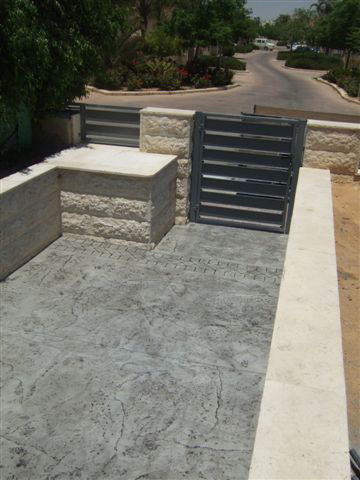 בטון מוטבע "קצה מושלם" בהטבעה דמוית סלע פראי , בשילוב סטריפ,בגוןן אפור